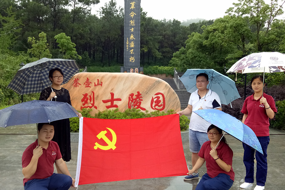 为庆祝建党95周年,深入推进“两学一做”学习教育活动,7月1日,易威斯党支部组织党员冒着暴雨赶赴茶壶山烈士陵园,举行 “庆七一”爱国主义主题教育活动。