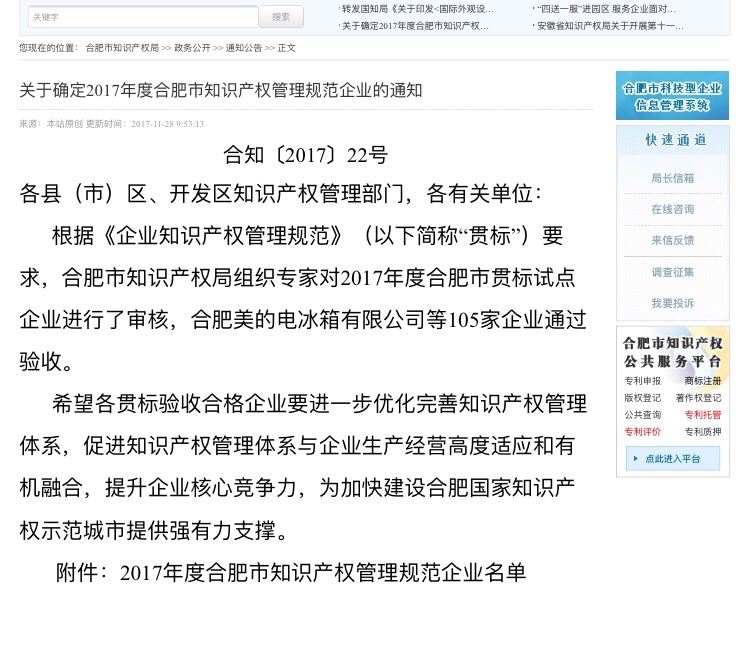 2017年11月28日,易威斯新能源顺利完成《知识产权管理体系》贯标认证,“贯标”是贯彻GB/T29490-2013《企业知识产权管理规范》国家标准的简称。