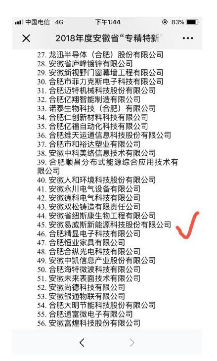 通过安徽省各级政府的层层筛选评比,我司成功入选,是政府给予我们易威斯的肯定和认可。