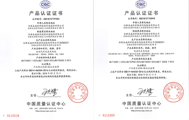 易威斯多项产品通过国家强制性产品CQC标志认证,易威斯公司致力于为新能源汽车产品提供科学、有效的系列技术服务,获得此认证,也是对易威斯的产品质量给予了肯定!