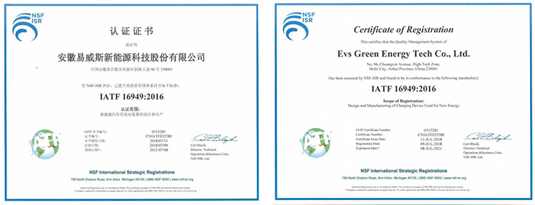易威斯新能源正式取得了IATF16949:2016证书。该证书的获得,标志着易威斯产品的设计生产,已经完全和国际汽车领域接轨,能够更好的为业界提供配套产品和优质服务。