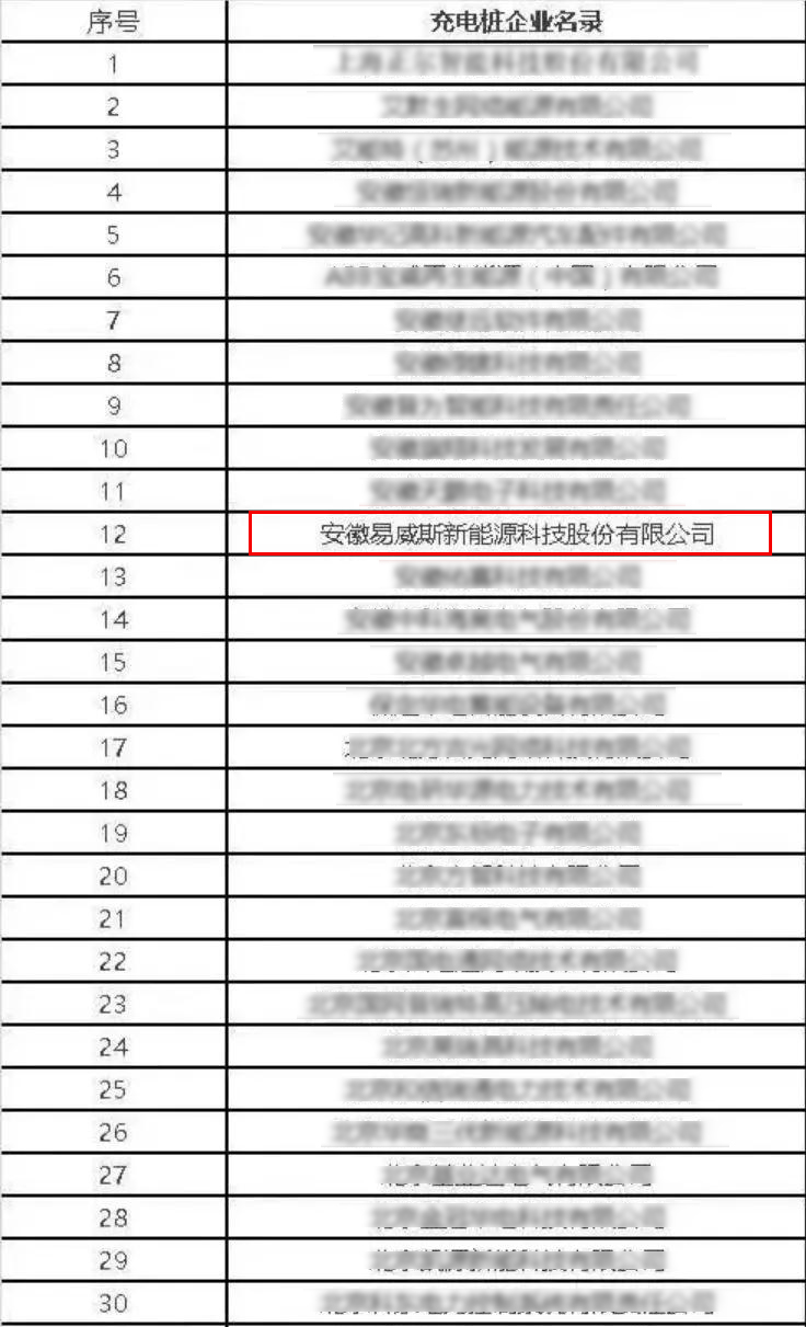易威斯荣登新基建充电桩企业名录