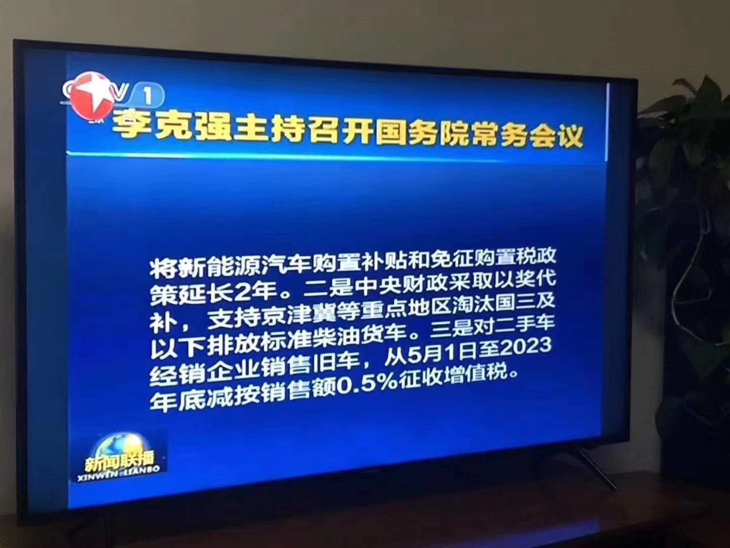 为促进汽车消费,会议确定,一是将新能源汽车购置补贴和免征购置税政策延长2年。二是中央财政采取以奖代补,支持京津冀等重点地区淘汰国三及以下排放标准柴油货车。三是对二手车经销企业销售旧车,从5月1日至2023年底减按销售额0.5%征收增值税。