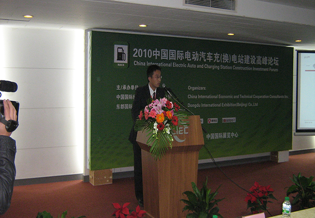 2010年10月26-28日,我公司受邀参加了在北京举办的2010年中国国际新能源电动汽车及充电站展览会暨论坛。在此次大会上,我公司的多款产品受到了很大的关注,并且我公司的技术总监受邀在此次大会的高峰论坛上就新能源汽车及充电站建设发表主题演讲。在此次论坛上,我公司王总就新能源汽车的充电站和充电桩的建设与发展提出了自已的看法,他在论坛上表示:“充电桩不仅是一个奶妈,也要作医生”。